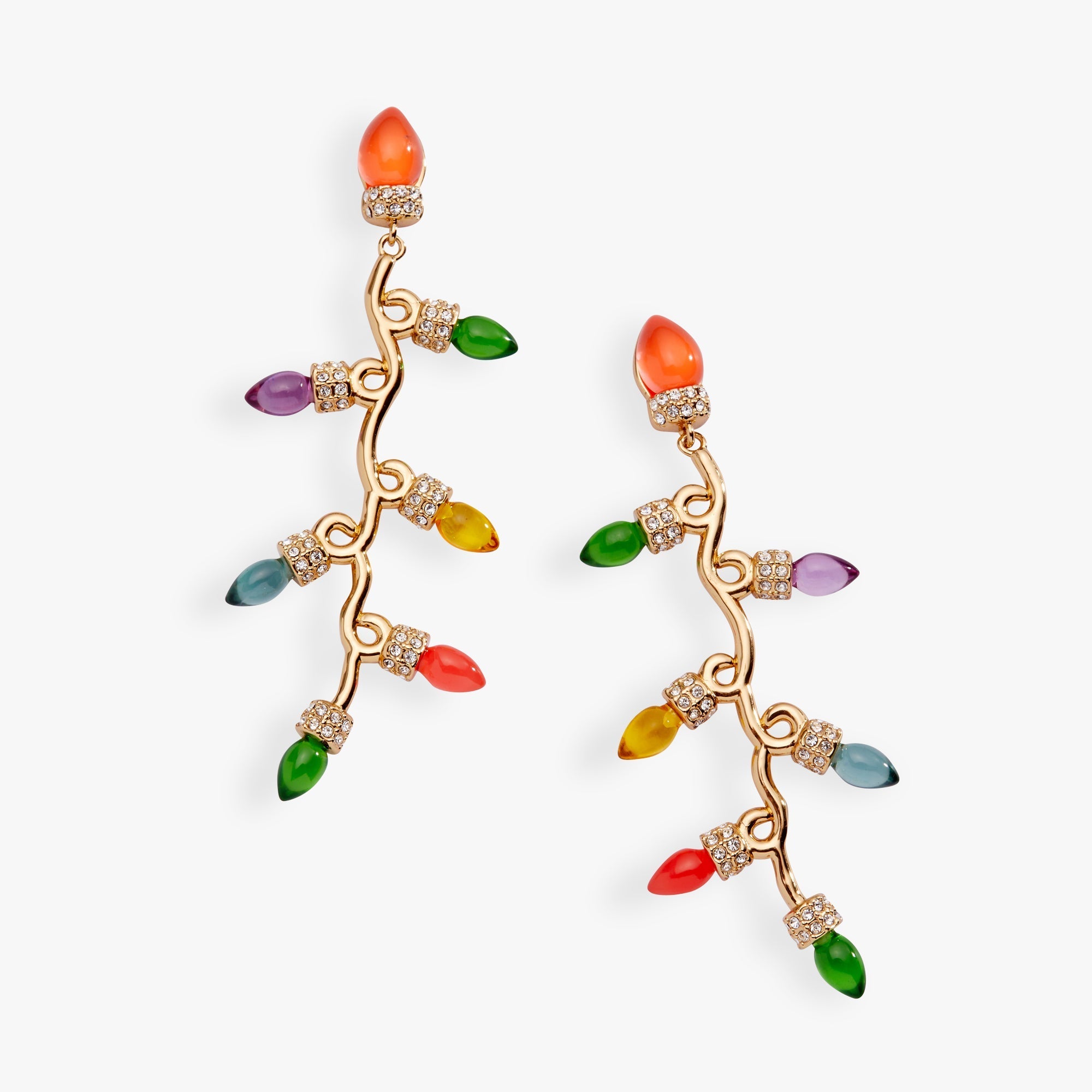 Sparkle and shine this holiday season with these holiday lights drop earrings. These festive earrings feature purple, red, blue, yellow and green holiday lightbulb charms accented with clear crystals, on artfully twisted dangling wires. Wear them for a glow all season long.