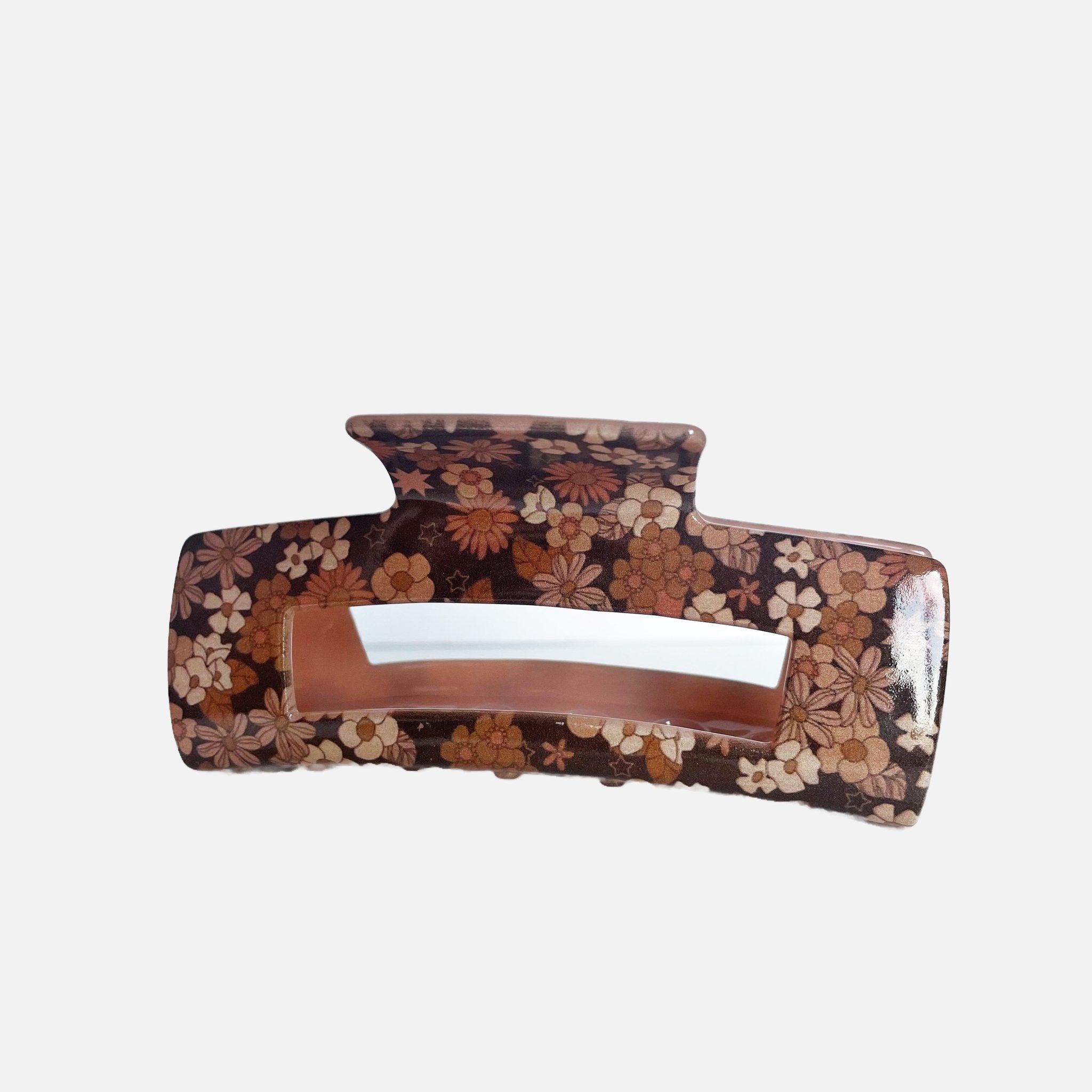Brown Retro Floral Claw Clip