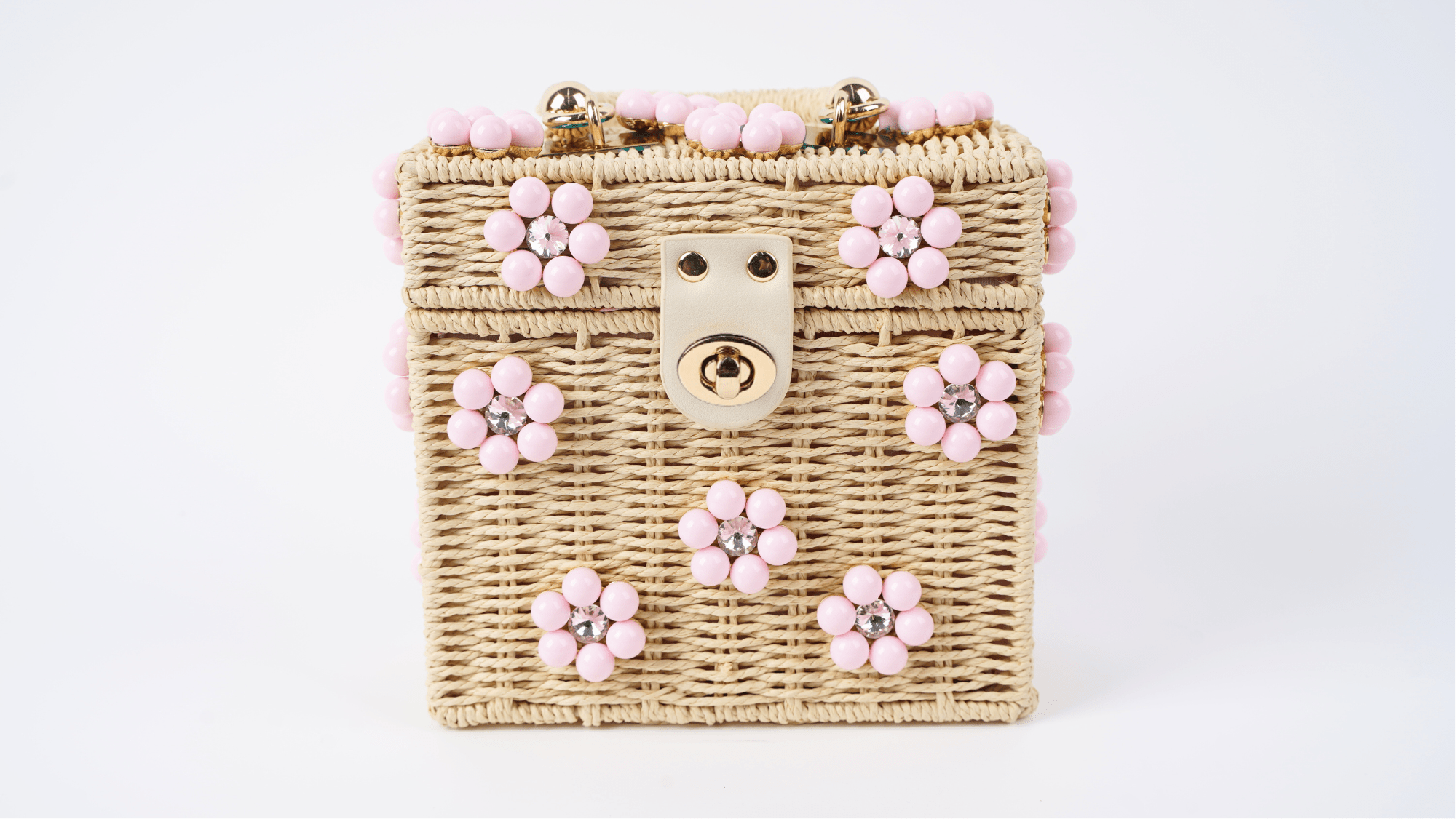 Cream Purse + Light Pink Daisy with Clear Rhinestone Center