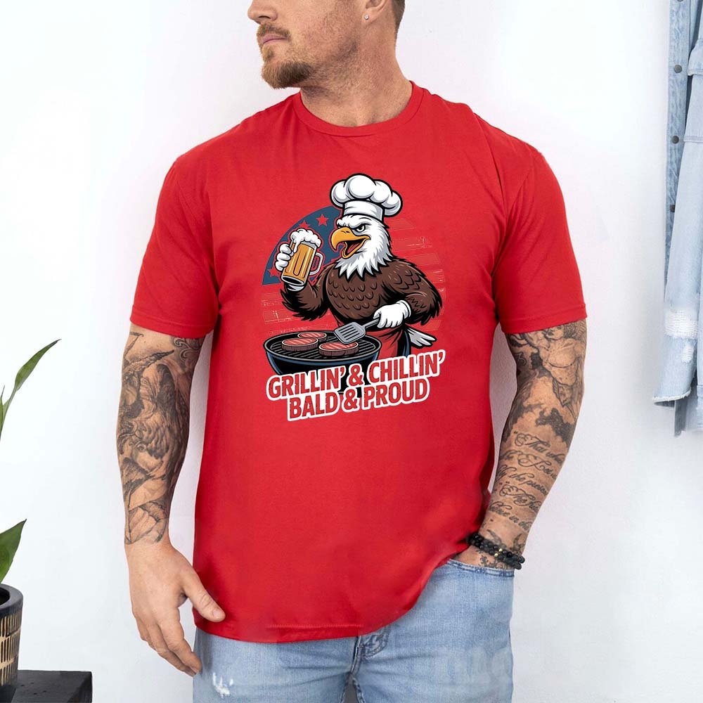 Get ready to light up the grill and the backyard with this Grillin’ & Chillin’, Bald & Proud tee—where patriotic pride meets smoky backyard vibes. Featuring a bold bald eagle and vintage BBQ-inspired design, this shirt is a must-have for any red-blooded American who believes in freedom, flavor, and fire-grilled feasts.