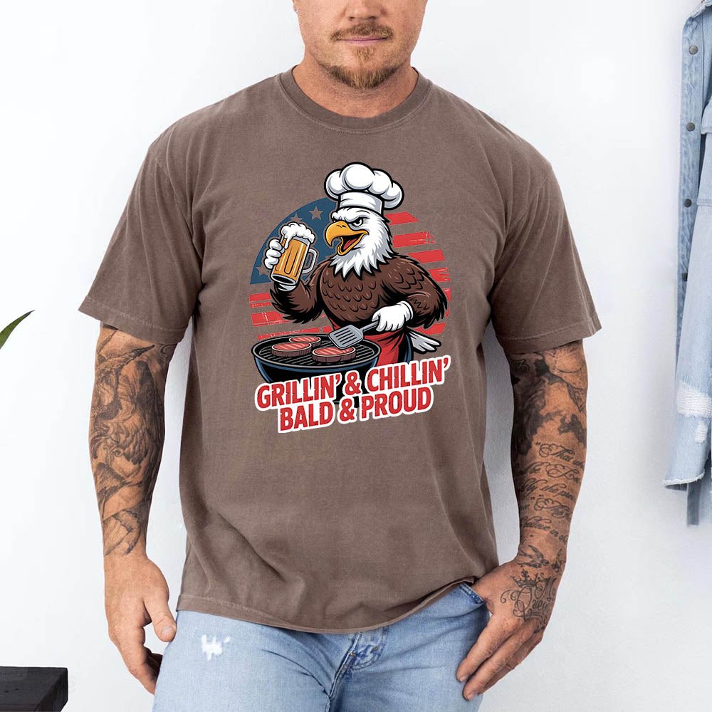 Grillin’ & Chillin’, Bald & Proud T-Shirt – Patriotic Bald Eagle BBQ Vintage Tee
