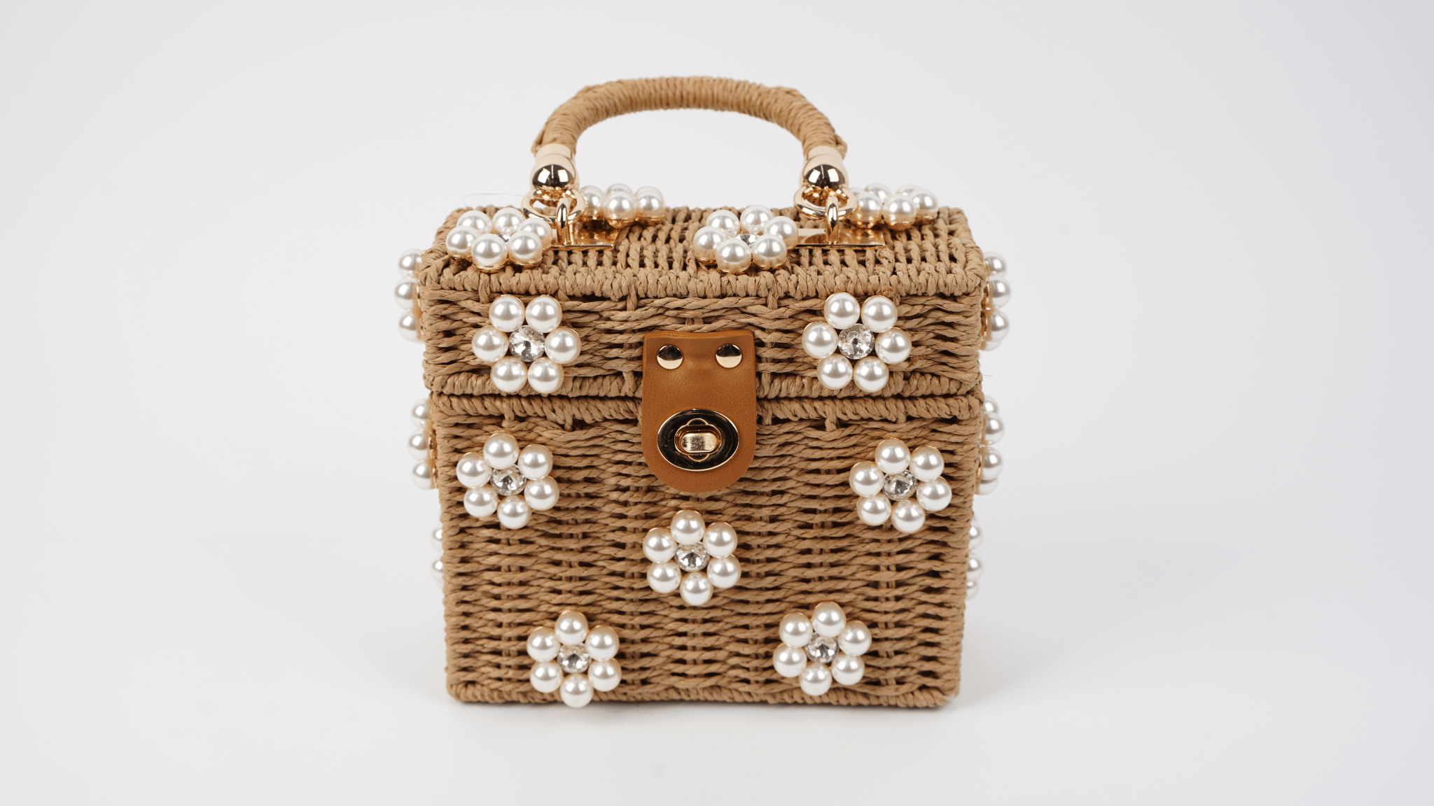Tan/Khaki Purse + Pearl Daisy with clear rhinestone center