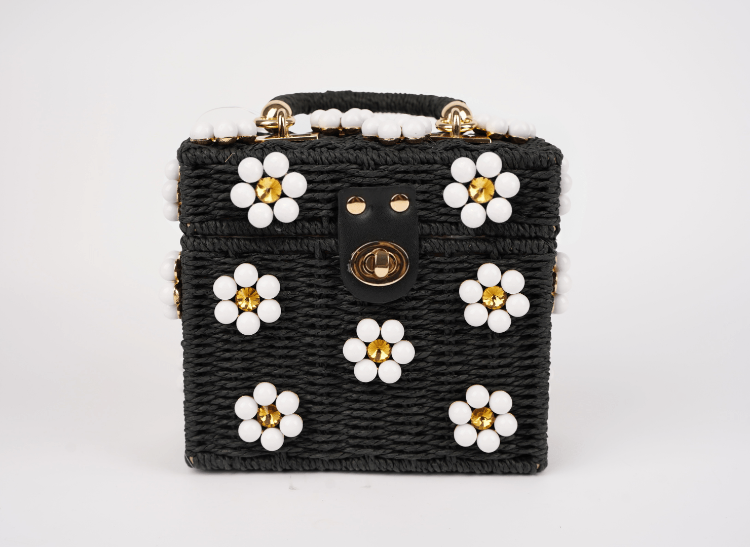 Black Purse + White Daisy with Yellow Rhinestone Center